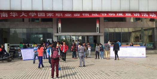 为大力推行国家职业资格证书制度,加快技能人才队伍建设,更好地服务我校学生就业和经济社会发展,贯彻执行湖南省人力资源和社会保障厅职业技能鉴定中心下发的《关于开展2015年国家职业资格证书制度宣讲活动的通知》(湘人社鉴函〔2015〕5号)文件,2015年10月11日上午继续教育学院在AG在线平台第1教学楼前坪举办了国家职业资格证书制度宣讲活动。活动通过在校园布置宣传横幅、摆放展架、发放相关宣传资料、现场问卷调查方式进行,让学生更多的了解了国家职业资格制度。